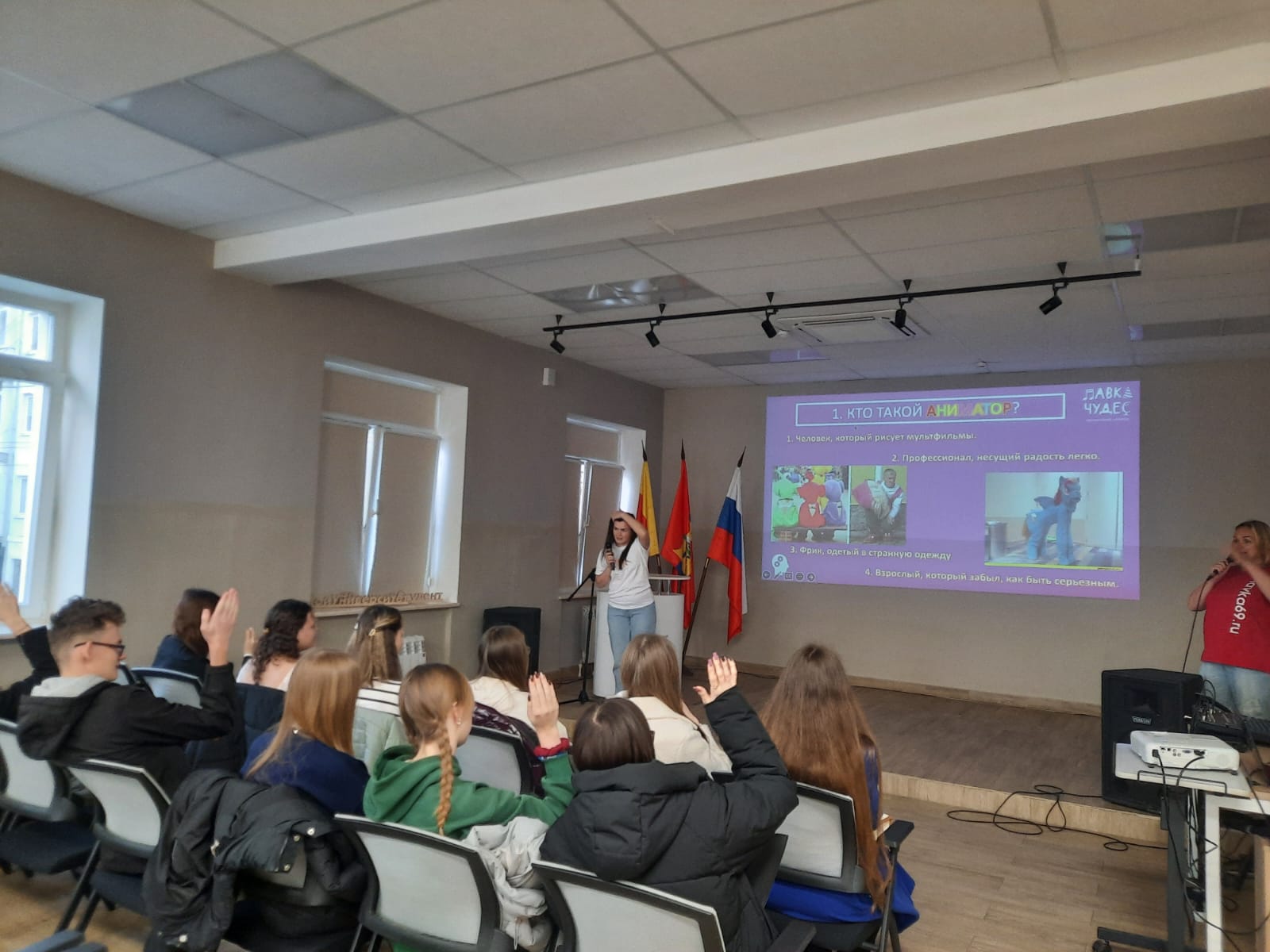 В рамках встречи провели квиз, целью которого было знакомство студентов с работой ведущего программ, аниматора. Это дало студентам возможность погрузится в праздничную атмосферу и побывать в закулисье Event-индустрии. Квиз наглядно показал, что профессия ведущего программ помогает развить надпрофессиональные навыки, такие как: