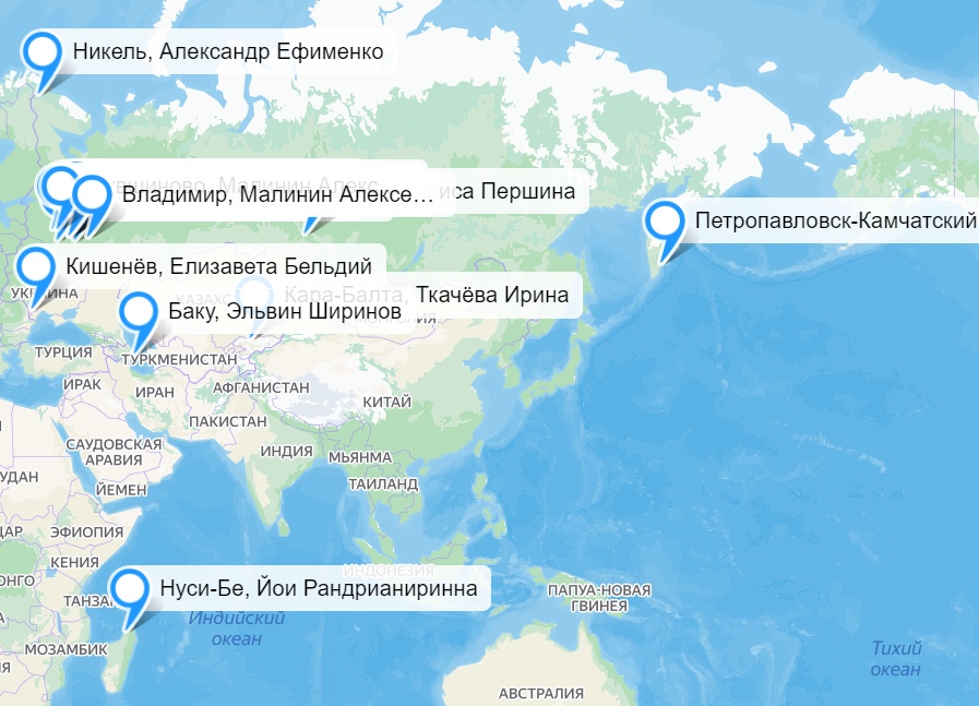 География проекта уже сейчас поражает воображение. На его карте можно увидеть в одном ряду родную многим Тверь, солнечные Гану и Мадагаскар, далекий Петропавловск-Камчатский, холодный Томск и многие другие города. В рамках проекта студенты с теплотой рассказывают о своей «малой Родине», делятся интересными фактами и историями из жизни.