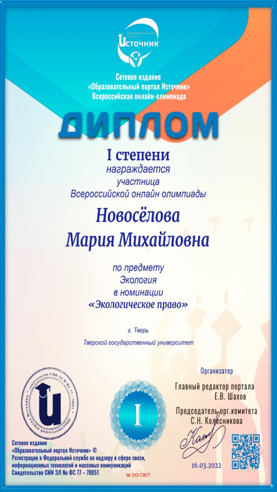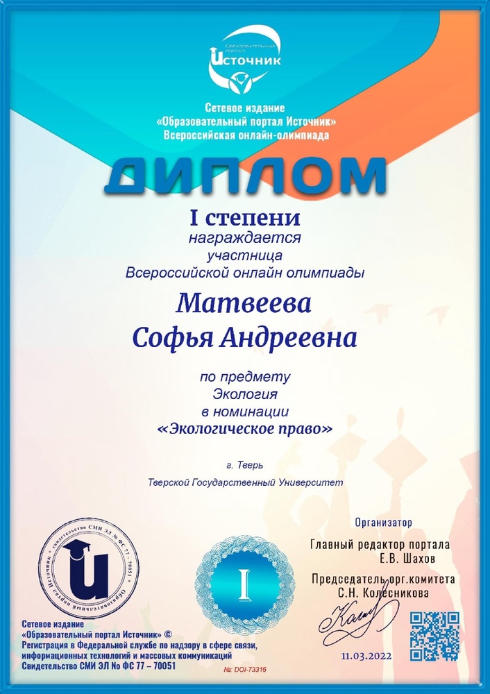 Студенты 3 курса направления подготовки «Юриспруденция» в рамках изучения учебной дисциплины «Экологическое право» приняли активное участие во Всероссийской онлайн-олимпиаде по экологии от образовательного портала «Источник» в следующих номинациях: «Природопользование», Глобальные проблемы общества», «Экологическое право», «Виды чрезвычайных ситуаций», «Техногенные опасности», «Экосистема», «Экологические законы», «Экосистема и ее компоненты», «Глобальные экологические проблемы» и «Экологические факторы».